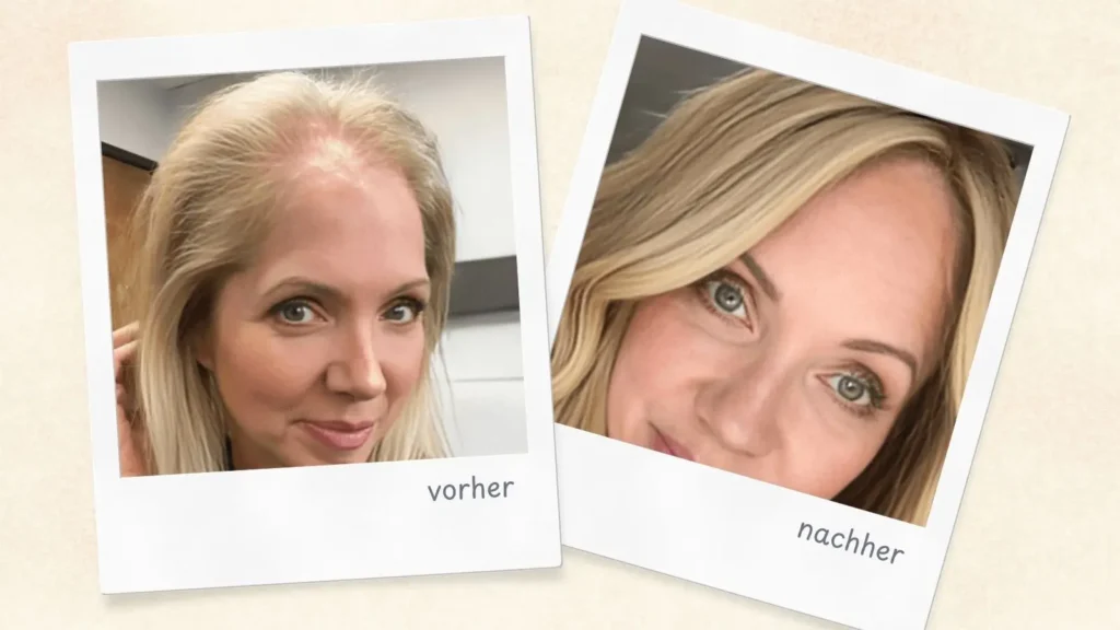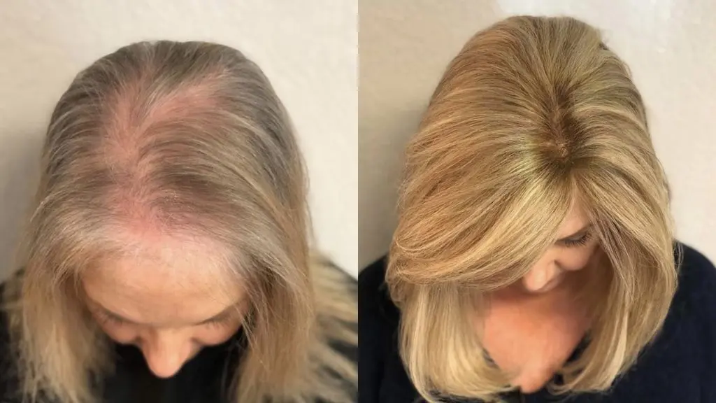 Déjà après quelques mois, il n’y avait plus aucune trace de sa perte de cheveux initiale due à la ménopause.